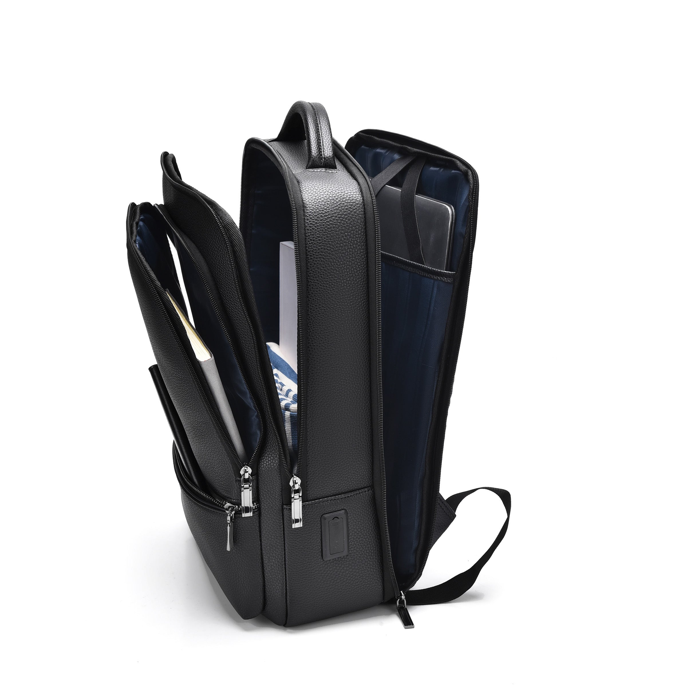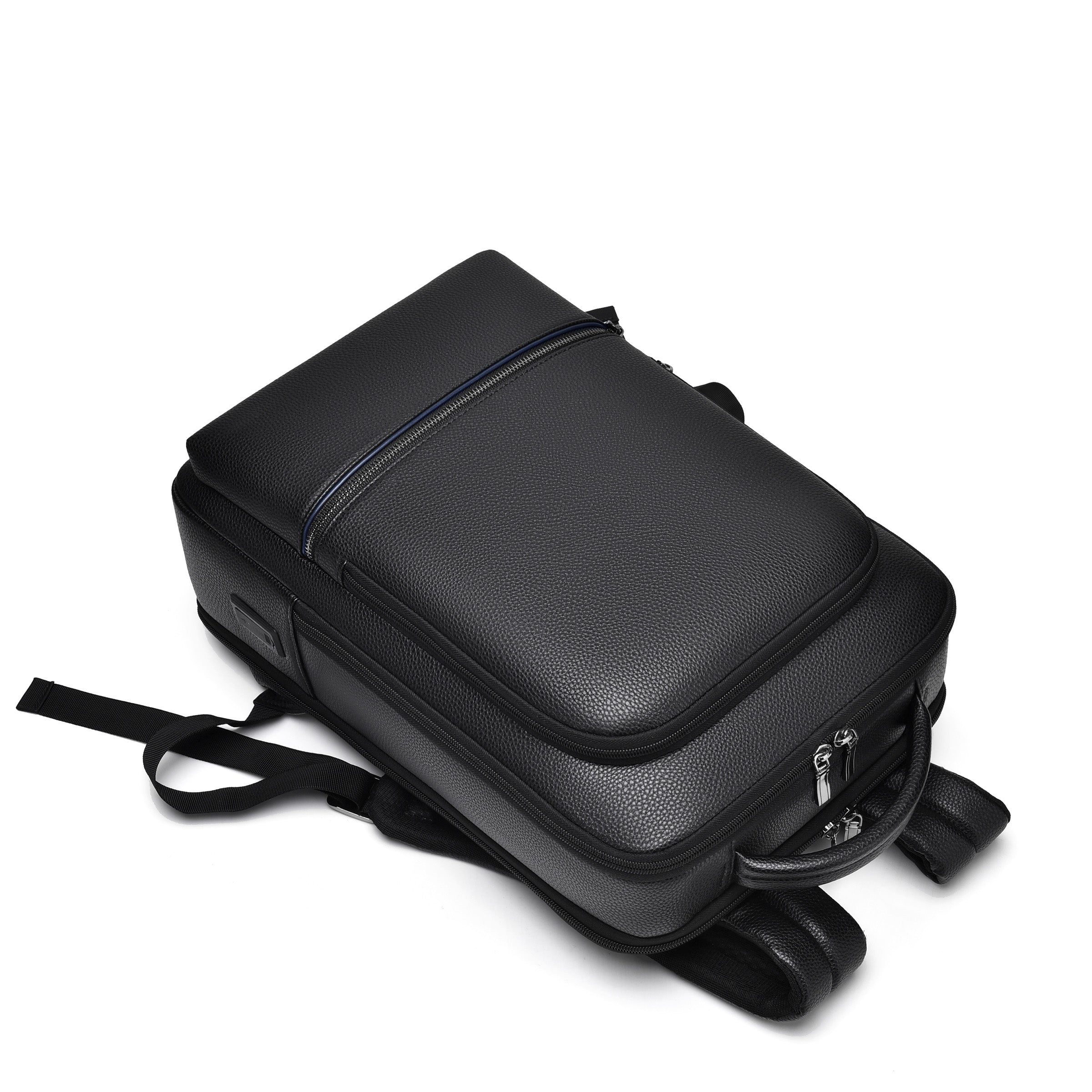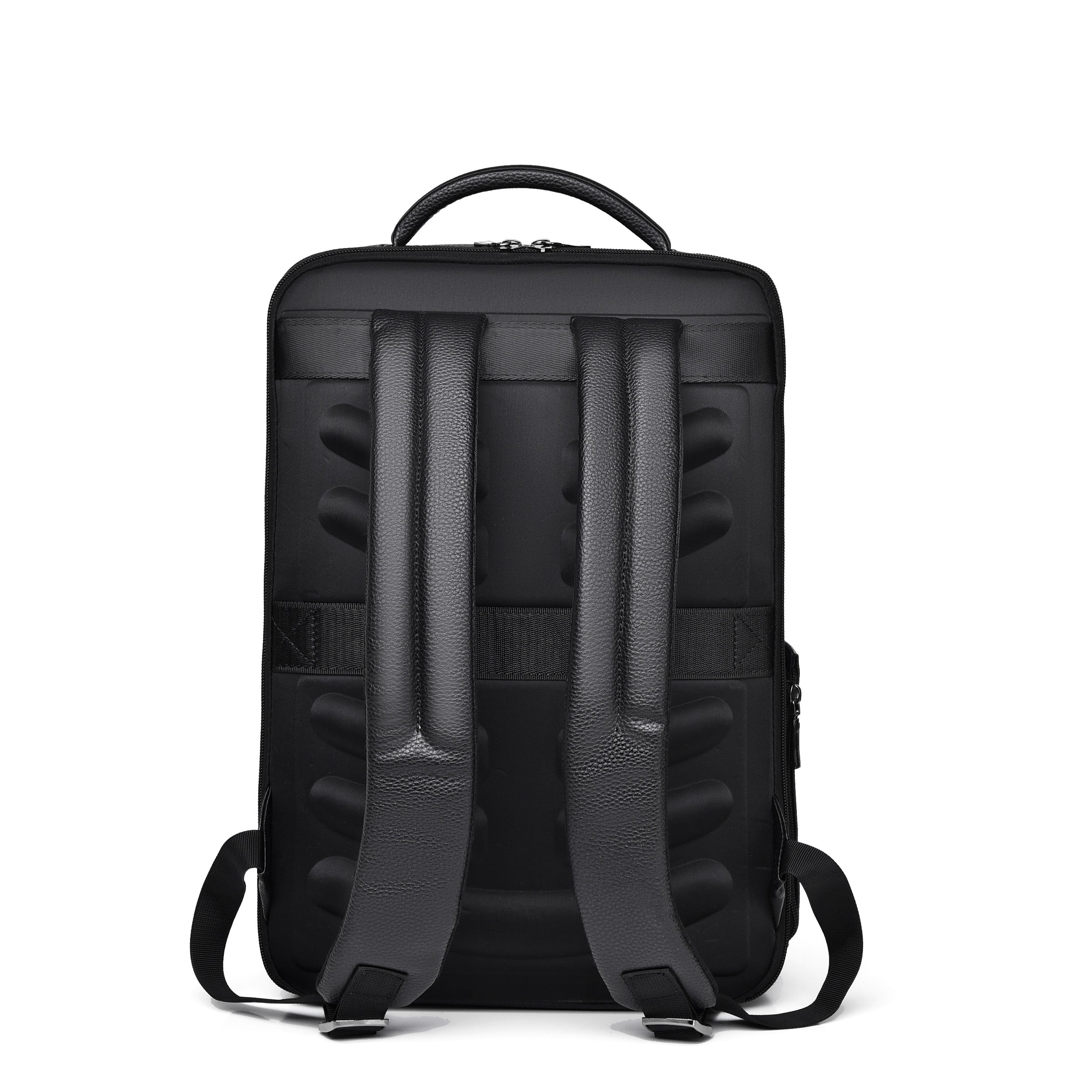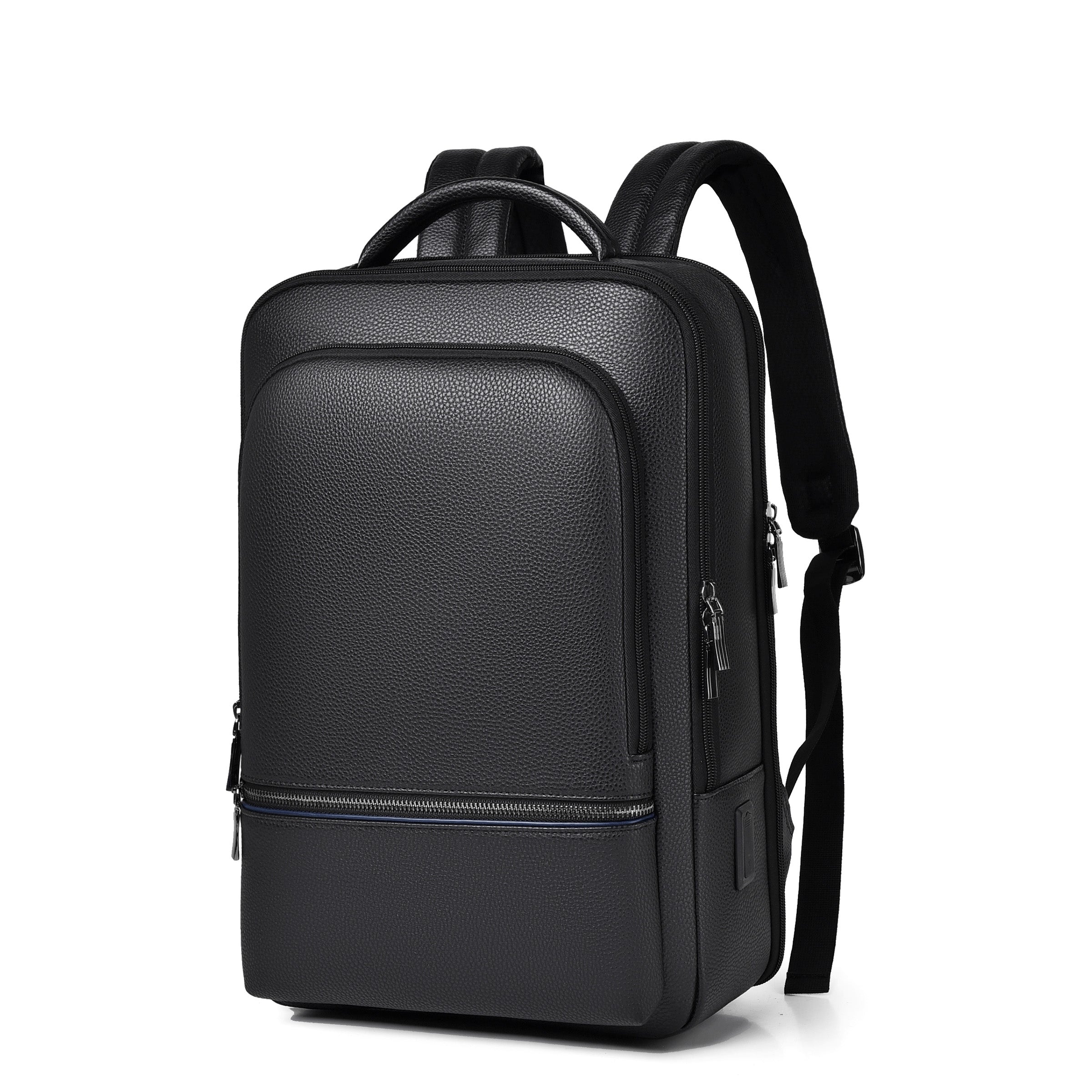 Introducing The Cochon PU Laptop Backpack – the perfect blend of style and functionality. Made from high-quality PU leather, this sleek black backpack features a 180-degree full-zip laptop compartment and a Type-C USB port for added convenience. With padded shoulder straps and a breathable design, it ensures comfort while carrying your essentials, including an 11" iPad, 15" laptop, A4 files, and more. Stay organized and stylish on the go with The Cochon PU Laptop Backpack.