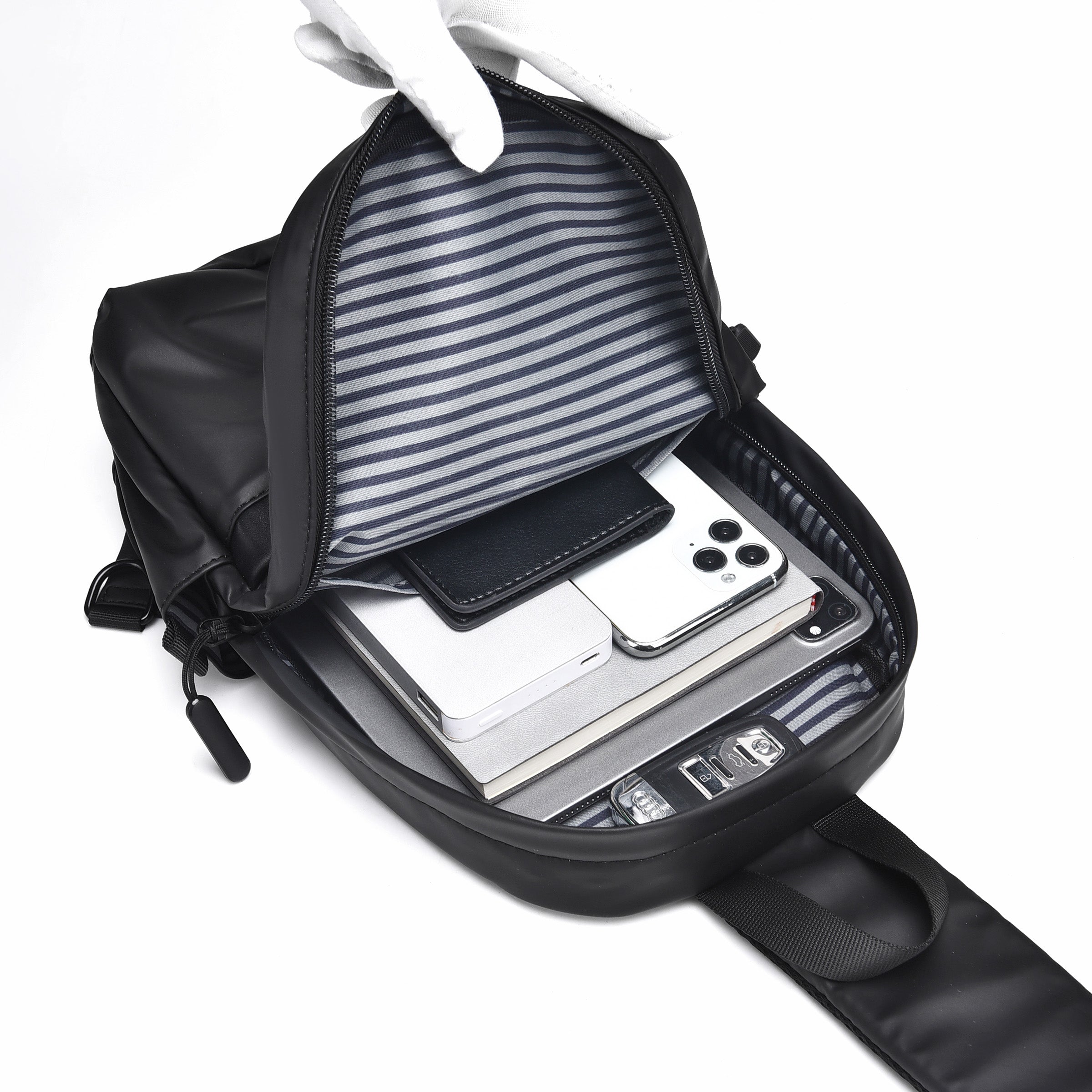 Spacious & Organized: The unisex sling bag features a main zip pocket with plenty of room for essentials like a 7.9" iPad, phone, wallet, headphones, power bank, and more. It also includes a front zip pocket, an anti-theft back pocket, a shoulder pocket, and two side pockets for easy access to smaller items.